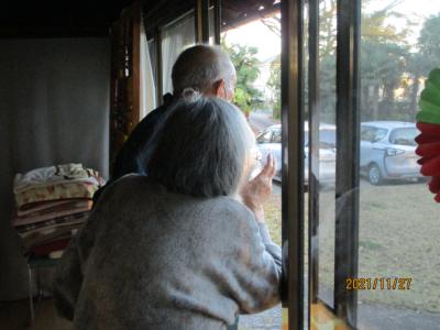 外を覗き込む父
