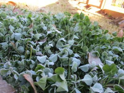 まだ陽の当らない場所は霜が溶けず