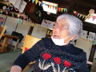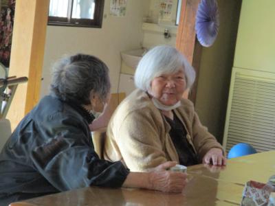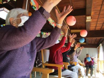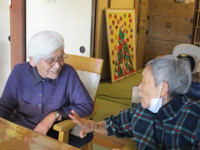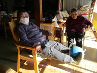 機能訓練中にも笑顔と笑い声が縁側に響きます