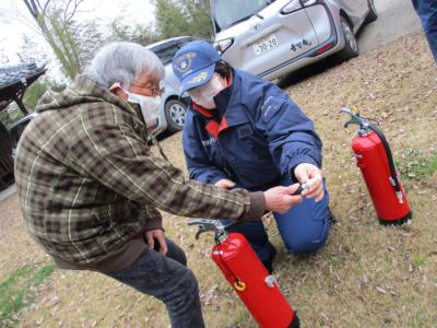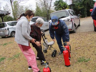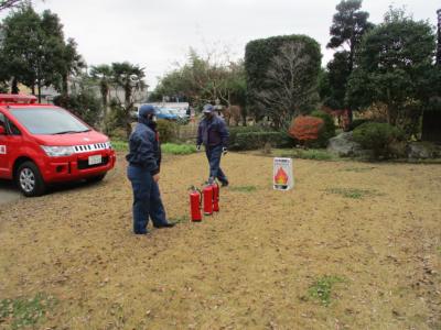 その後も皆さん寒さに負けず、上手に消火器を扱い、しっかりと火を消す事が出来ました