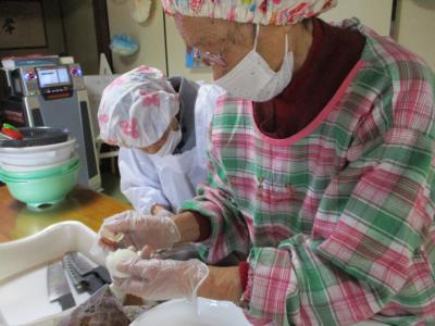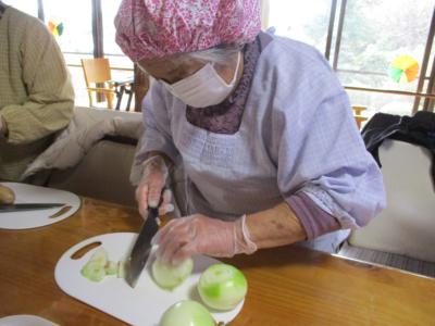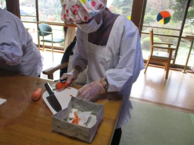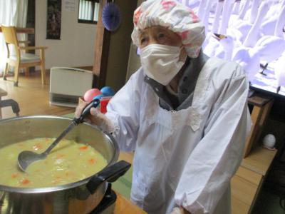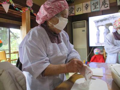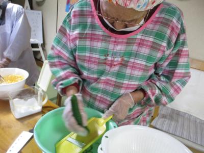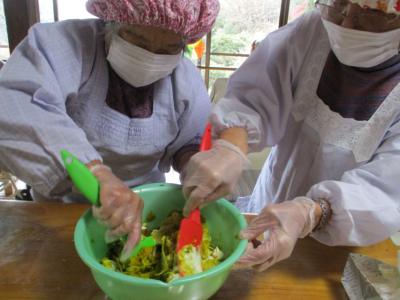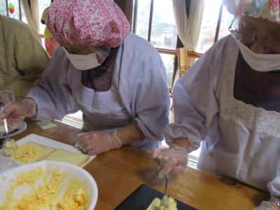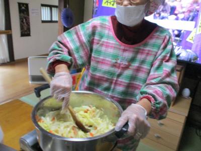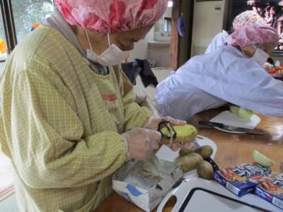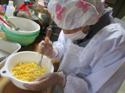 かぼちゃサラダ作りが始まりました~うれしい顔