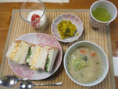 クリームシチューにはサンドウィッチが合いますね~ハートたち (複数ハート)