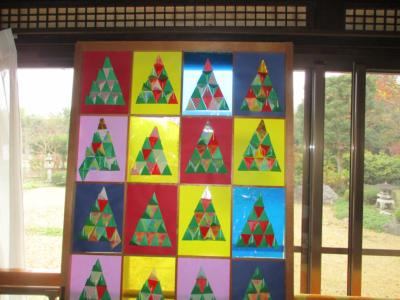 障子をリメイクの🎄クリスマス🎄壁画もみなさまの目にとまるところに飾らせていただいておりまするんるん (音符)