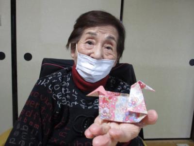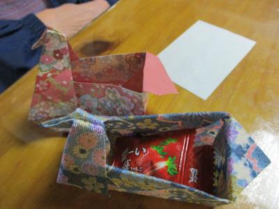 可愛い鶴の小物入れが完成しましたわーい (嬉しい顔)ハートたち (複数ハート)
