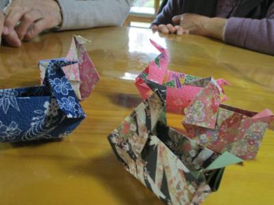 両面千代紙で挑戦した母たちの作品ですハートたち (複数ハート)