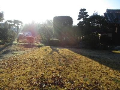 朝陽に照らされてキラキラと輝く庭がとっても綺麗です目がハート (顔)