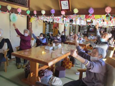 聴き馴染みのある懐かしのメロディに合わせ、口遊みながら楽しく身体を動かす皆さんです。