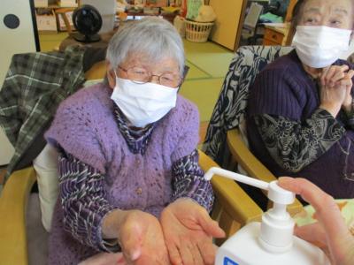 昼食の前にも、しっかりと手指の消毒を行なって頂いてますよ!