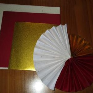 三つの扇を蛇腹折りで作って行きますよ~~(*^^*)