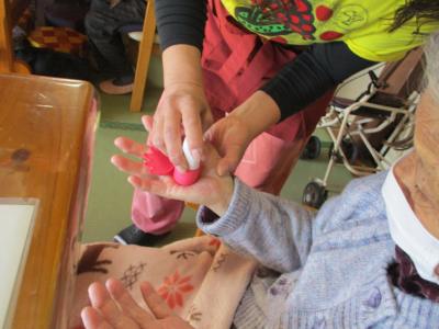昼食前とおやつの前には必ず消毒をさせていただきます