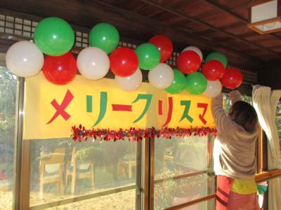 スタッフ カミチャンが庵内をクリスマス装飾で素敵に飾ってくれています