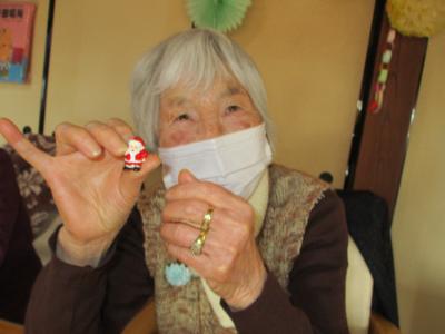 小さな🎅サンタさんを手に取りニッコリ笑顔のお母さん(#^.^#)