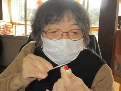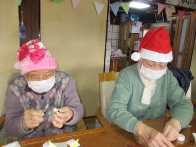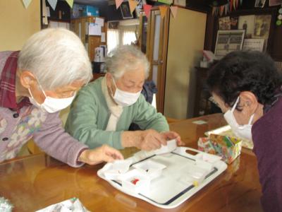 お隣さんと会話を弾ませながら、手作りを楽しんでいます。