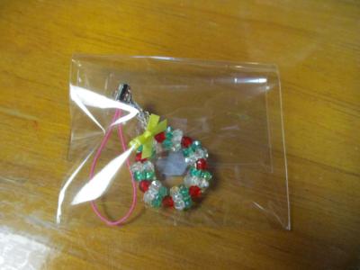 クリスマスリースのビーズチャームはスタッフあっこちゃんの手作り