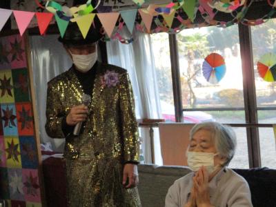 キラキラ衣装の社長登場に皆さんこの表情ですぴかぴか (新しい)ぴかぴか (新しい)