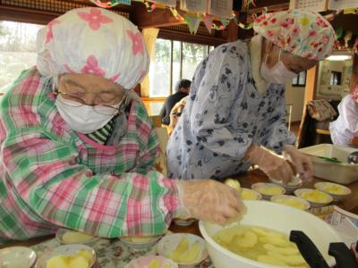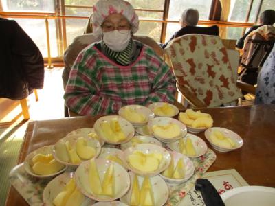 りんごの皮むきから、皿に盛り分ける所まで担当されたお母さん達も、