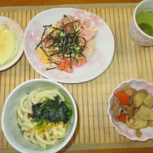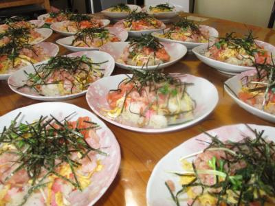 ちらし寿司の盛り付けも終わりましたので、皆さん揃っていただきましょう