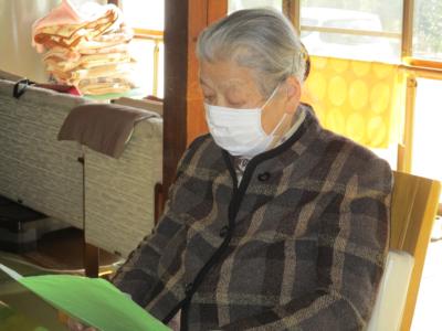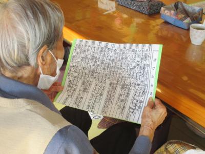ぼけたらあかんの唱和では、一語一句文字を目で追いながら大きな声で読まれています。
