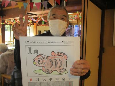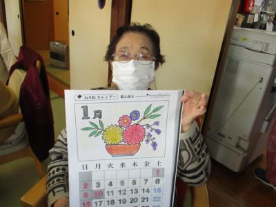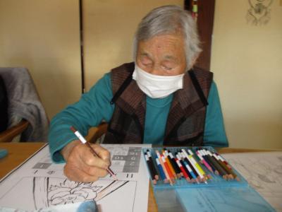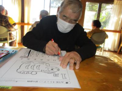 脳トレでは、一月の暦の色塗りに取り組まれました。