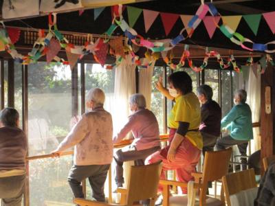 午前は縁側にて身体を動かされ、各々の身体機能に合わせたメニューを考慮しながら、