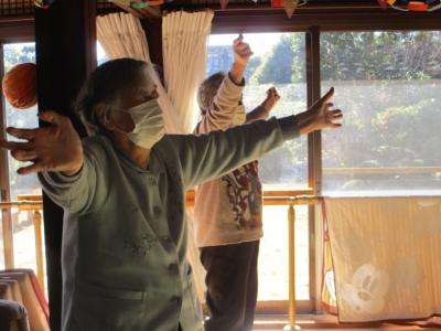 “お富さん”や“水戸黄門”、“365歩のマーチ”で歌いながら身体を動かします
