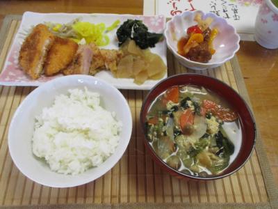 今日の具は人参・ほうれん草・玉ねぎ・しめじ・卵