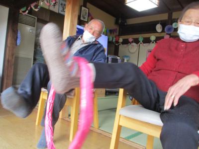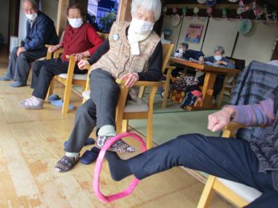 今日は、看護師お手製の輪っかを足を使ってリレーしていき