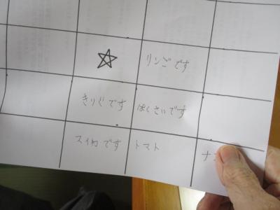 ご自身で作ったビンゴのカードに印を付けていきますよ