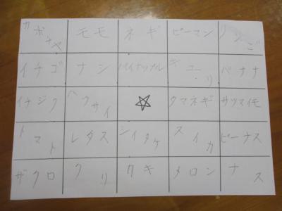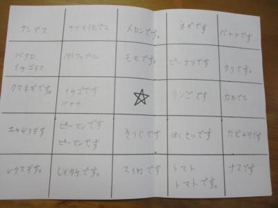 お一人ずつにお題を言っていただき、空いているマスに自由に埋めて行きます