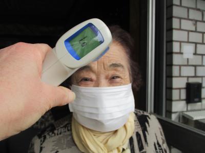 お願いしていますが、乗車前にも検温、手指や洋服の消毒