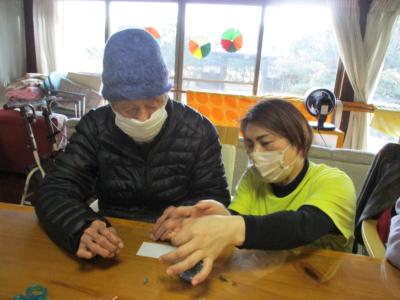 脳トレではひらがな迷路に取り組まれる父、母