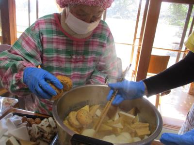コトコト煮込まれた大根の鍋にたくさんの具材を入れていきましょ~