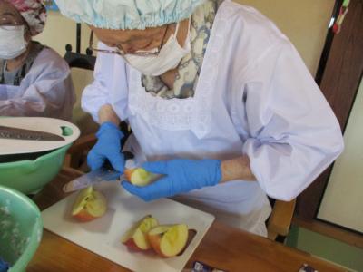 母には丁寧にリンゴの皮を剥いていただきました🍎