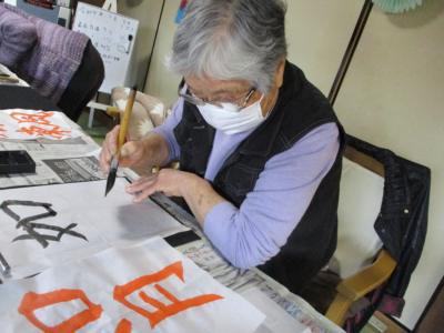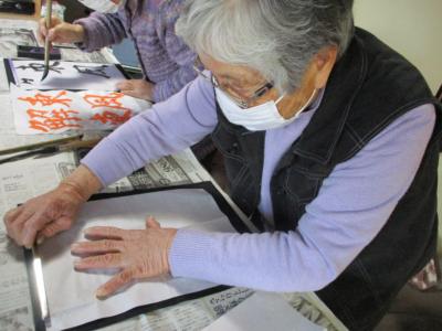 書く前にバランス良く書ける様に念入りに半紙に折り目を付ける母