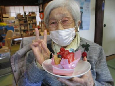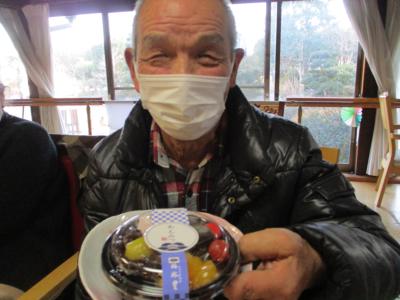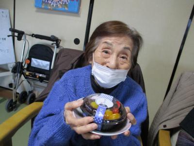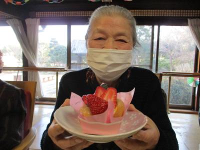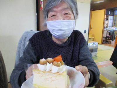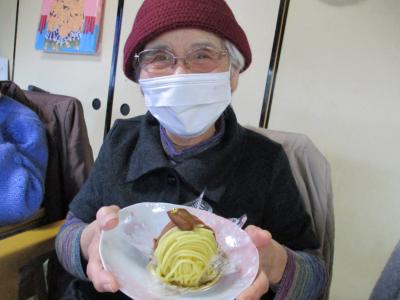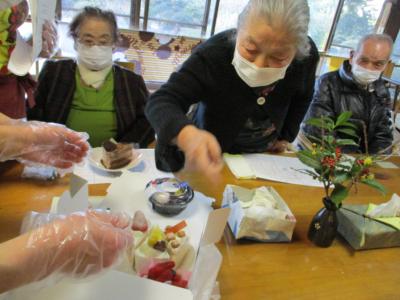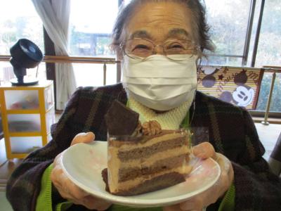1番にビンゴとなった母は大好きなチョコレートケーキを