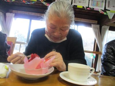 甘くて美味しいケーキを味わう母をカメラで狙っていたら