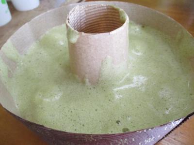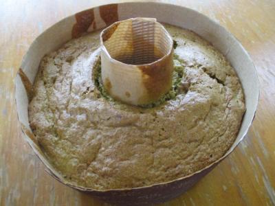 おやつは午前中に作った黒豆入り抹茶シフォンケーキ