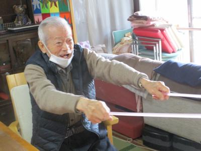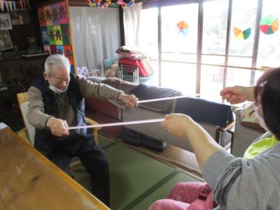 ペアでゴムチューブを使用する機能訓練は初めてでしたが、