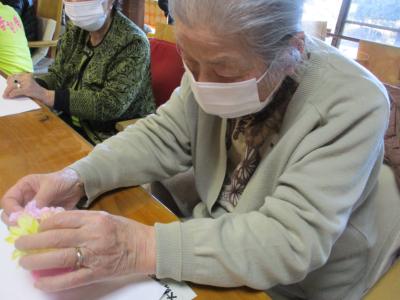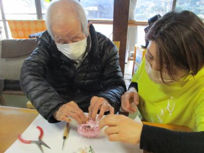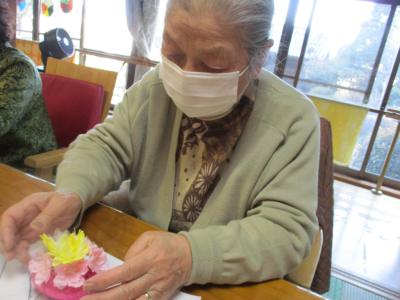 お花の配置を考えながら石鹸の上に乗せていきます🌺