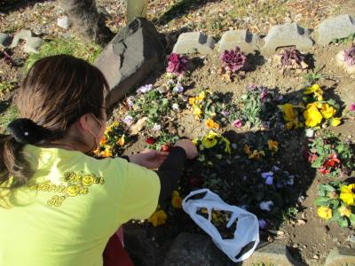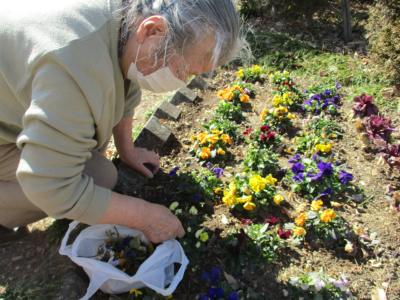 母の手は魔法の様で、土をならす時もはながらを摘むときも