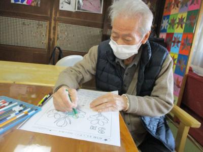 三種類の絵の中からクロッカスを選び集中して塗られていました