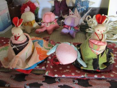 桃の節句に因んでちりめんで製作された桃も飾られています。