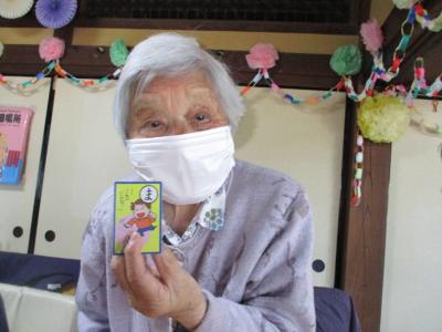取れた札を見せて下さる母です。