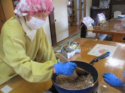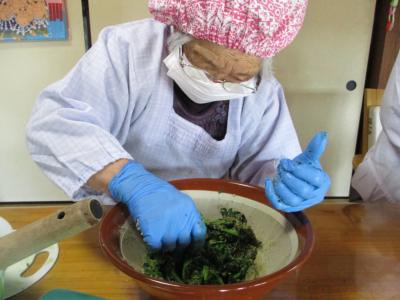こちらの母はほうれん草の胡麻和え作りdouble exclamation