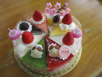 今日のおやつはひな祭りデコレーションショートケーキぴかぴか (新しい)ぴかぴか (新しい)ぴかぴか (新しい)