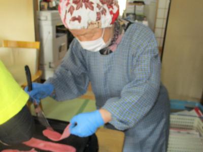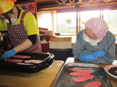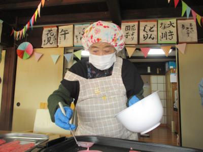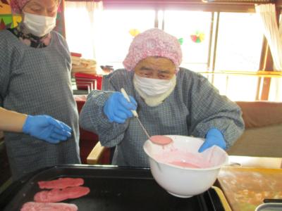 今日は【桜餅】作りを行ないま~す(*^_^*)