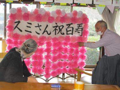 明日は、愛の幸望庵の利用者様が百寿を迎える大切な記念日です