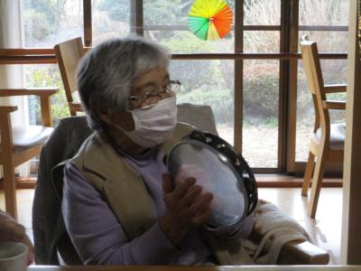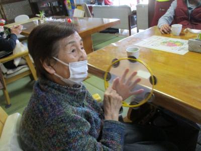 タンバリンを持ってリズムに合わせます