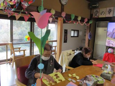 母たちは手を休めることなく、集中して吊るし飾りのパーツを作り続けました