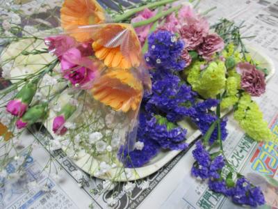 皆さん、思い思いにご自分で選んだお花を手にアレンジを楽しまれていました。